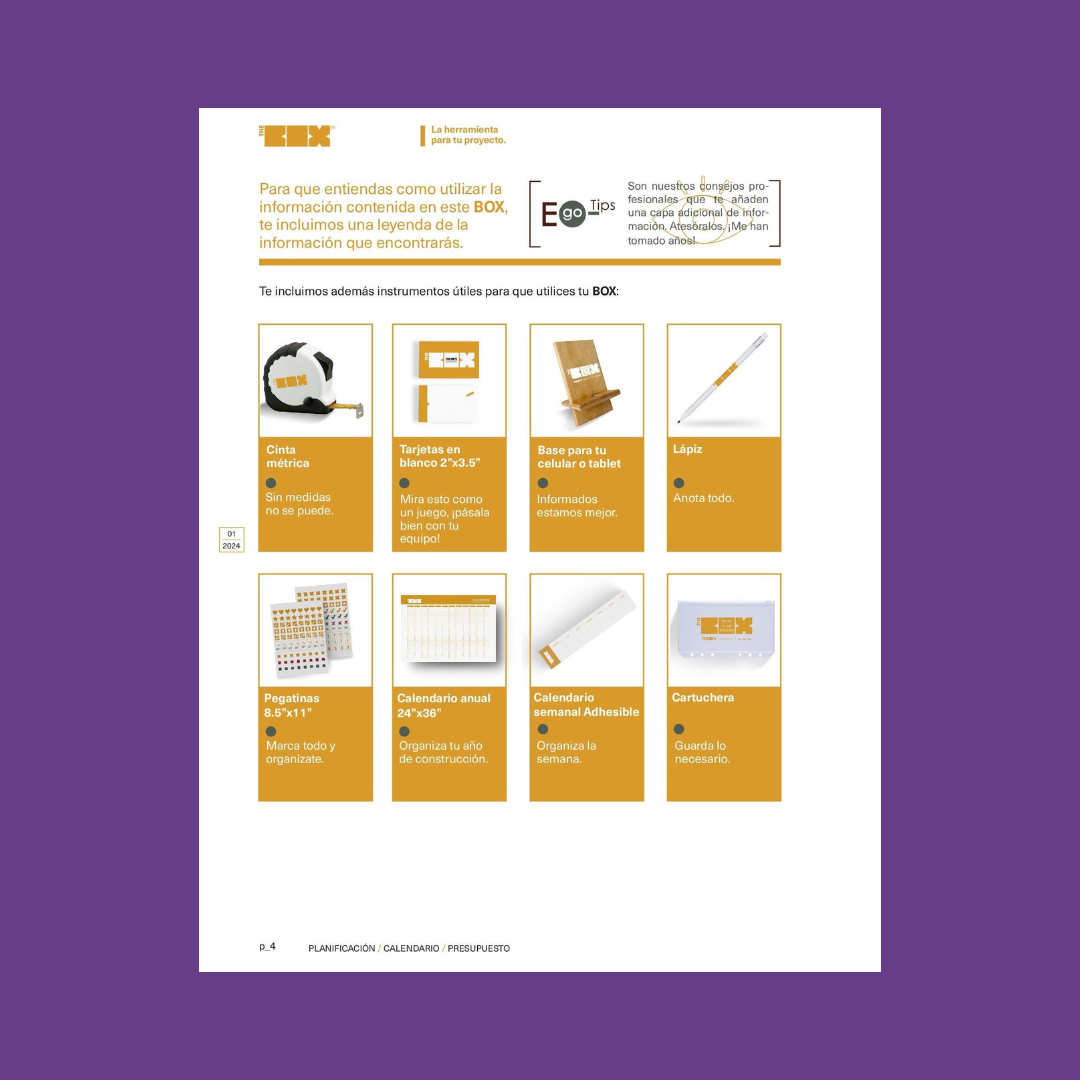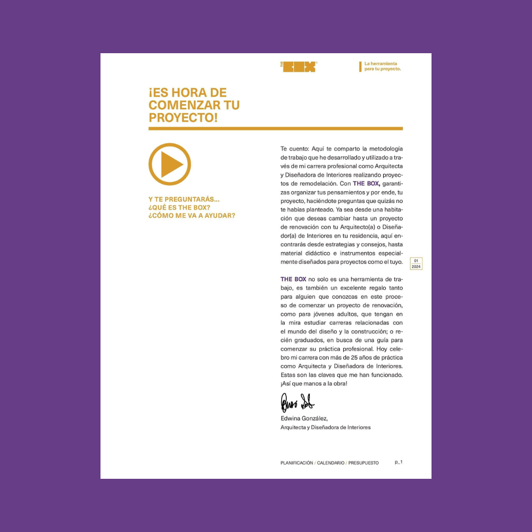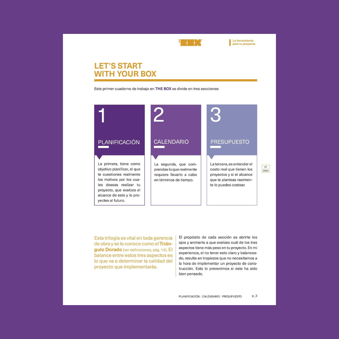 Start your project on a solid footing with The Box 1. This digital workbook is perfect for those in the early stages of their project. Designed to help you plan strategically, create a clear timeline, and define a detailed budget, it’s a structured guide that will allow you to set goals, define deadlines, and organize your finances efficiently.